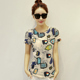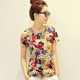 2016夏装新款宽松民族风花鸟印花棉短袖T恤女夏季体恤上衣大码