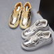 欧洲站女鞋2015秋季厚底松糕鞋潮流金银色漆皮运动休闲鞋平底单鞋