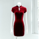 木木天空外贸英国单天鹅绒旗袍中式礼服裙春季新款连衣裙女