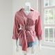 木木天空2017年春季新款立领条纹衬衫修身显瘦不规则上衣配腰带女