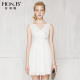 HONB红贝缇2017夏新款无袖纯色网纱百褶连衣裙桑蚕丝裙子女 ZQJ