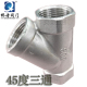 304不锈钢Y型45度三通 内螺纹三通 丝口 DN15螺牙 6分 1寸 DN20