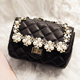 iFashion2017新款夏季手工花朵镶水钻单肩斜挎链条女式小方包包