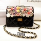 iFashion2017新款夏潮女士雪纺花朵水钻珍珠链条单肩斜挎小方包包