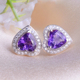 灵诺美 925银心形天然紫水晶耳钉托帕石耳饰气质送女友情人节礼物