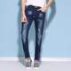 2017春夏新款韩版小脚牛仔裤男修身破洞弹力青年小直脚牛仔裤男潮