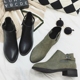 韩版中跟小短靴女秋冬2016新款百搭皮带扣小皮靴圆头方跟切尔西靴