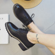 韩版小皮鞋女2016秋新款系带粗跟布洛克鞋学院风英伦漆皮厚底单鞋