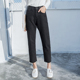 深灰色弹力修身韩版九分牛仔裤 春夏女装中低腰显瘦9分裤 黑色裤