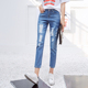 破洞九分裤 女装 夏季直筒磨破牛仔裤 宽松MM显瘦中腰韩版直筒裤