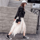 搏刻2017春季新款韩版高腰不规则中长款网纱打底半身裙百搭A字裙