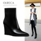 坡跟短靴女春秋单靴黑色尖头高跟鞋女秋2016潮新款踝靴冬季及裸靴