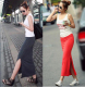 2017春夏欧美垂坠质感侧开叉显瘦修身大码包臀裙一步裙半身裙长裙