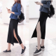 韩版春装前开叉罗马布半身裙直筒裙口袋包臀黑色百搭一步裙女大码