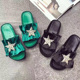 2017夏季新款一字型松糕厚底韩版百搭女士凉拖时尚星星带钻潮女拖