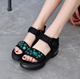 2017夏季新款厚底坡跟学生运动气垫凉鞋女磨术贴扣带网面旅游鞋子