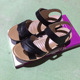 夏季中年女凉鞋皮中老年妈妈凉鞋平底坡跟中跟妈妈鞋女鞋大码女