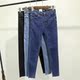 春夏款裤脚剪边包腿弹力高腰牛仔裤水洗净色显瘦修身铅笔小脚裤女