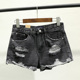 vintage.pudr洗水黑A字宽松大长腿破洞白须翻边热裤 外穿牛仔短裤