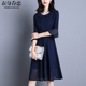 夏装2017新款喇叭袖名媛气质雪纺连衣裙女中长款刺绣七分袖a字裙