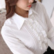 春夏气质款韩版荷叶花边长袖白色衬衫女职业装修身雪纺衫打底上衣