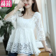 雪纺衫蕾丝衫女春装打底衫韩版大码宽松长袖短袖白色百搭防晒衫