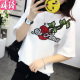 刺绣t恤女短袖宽松白色韩版纯棉大码休闲百搭玫瑰学生半袖体恤女