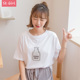 Skgirl2016夏装卡通印花图案白色短袖t恤女韩国半袖学生纯棉体恤