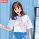 Skgirl拼接圆领短袖T恤夏季学院风韩版宽松字母宽松印花体恤女