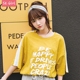 Skgirl韩国秋季白色纯棉中长款长袖T恤女 学生宽松印花字母学院风
