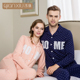 春秋季优雅翻领纽扣情侣款睡衣长袖开衫系扣子男女士家居服套装