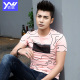 韩版夏季短袖T恤男圆领贴布印花体恤条纹修身纯棉半袖衣服潮男装