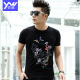夏季男士短袖t恤纯棉圆领印花半袖修身骷髅头个性碎花衣服潮男装