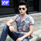 夏季纯棉短袖T恤男装圆领韩版修身半袖印花体恤个性花卉衣服潮流