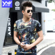 夏季韩版男士短袖T恤迷彩印花圆领纯棉半袖修身潮流休闲男装衣服