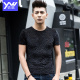 夏季男装短袖T恤圆领金丝绒镂空雕花体恤修身半袖韩版碎花衣服潮
