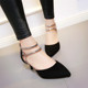 2017尖头夏季新款高跟鞋5cm粗跟中跟性感中空凉鞋女交叉绑带显瘦