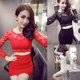 2015秋装新款韩夜店性感女装韩版V领蕾丝露肩长袖修身包臀连衣裙