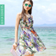 水云间吊带印花连衣裙女2017夏装新款修身无袖雪纺短裙高腰百褶裙