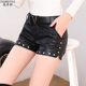 皮短裤女2017春季新款韩版镶钻靴裤秋冬打底裤修身显瘦外穿PU皮裤