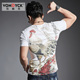 范戴克中国风男装 大公鸡后背印花半袖潮流修身体恤圆领短袖t恤男