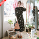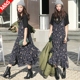 2017春季韩版气质收腰立领雪纺衬衫裙打底裙中长款黑色碎花连衣裙