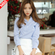 媄森韩国清新宽松显瘦纯棉长袖衬衣百搭职业装蓝白条纹衬衫女v领
