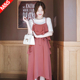 2017夏季甜美小清新v领无袖粉色吊带连衣裙沙滩裙套装两件套