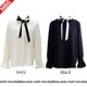 春韩国系带花边衬衣宽松大码雪纺衫蝴蝶结立领白色雪纺衬衫女长袖