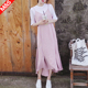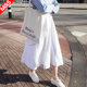 2017夏季甜美小清新裙子松紧腰荷叶边棉麻不规则白色长裙夏半身裙