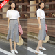 17夏新款韩版百搭高腰修身开叉一步裙黑白格子半身裙包臀裙中长款