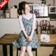 2017夏季新品韩版甜美小清新收腰v领荷叶边吊带裙碎花雪纺连衣裙