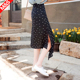 2017夏季韩版高腰修身显瘦中长款包臀不规则开叉雪纺波点裙半身裙