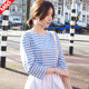 夏季基础款学生学院风宽松纯棉百搭圆领短袖七分袖蓝白条纹t恤女